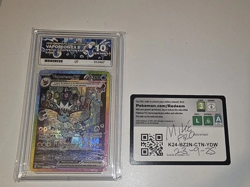 Vaporeon EX Prismatic Evolutions Special Illustration Rare 149 Ace Grading 10 | - | 10 | - | £281.50 | - | - | - | 2026-03-11 | View listing | |