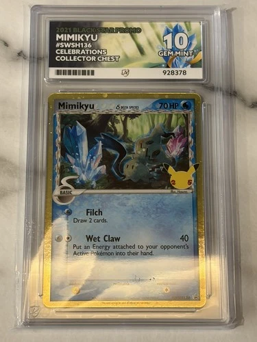 Mimikyu SWSH136 Black Star Promo Celebrations Pokemon Ace Grading Gem Mint 10 | SWSH136 | 10 | £90.00 | £4.50 | +£85.50 | +1900.0% | 2026-04-12 | View listing | ||