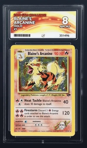 Blaine's Arcanine Holo Gym Challenge 2000 #1 Ace Grading 8 💫 Swirl ✨ | - | 8 | - | £145.00 | - | - | - | 2026-02-23 | View listing | |