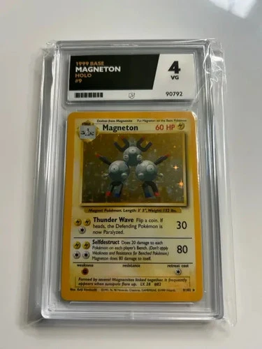 1999 Magneton 9/102 VG Base Set Unlimited Holo ACE Grading 4 | 9/102 | 4 | No | £15.54 | £4.00 | +£11.54 | +288.5% | 2026-02-19 | View listing | |