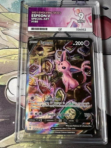 Pokemon TCG Espeon V 180/203 Evolving Skies - Ace Grading 9 Mint | 180/203 | 9 | No | £167.10 | £55.00 | +£112.10 | +203.8% | 2026-02-02 | View listing | |