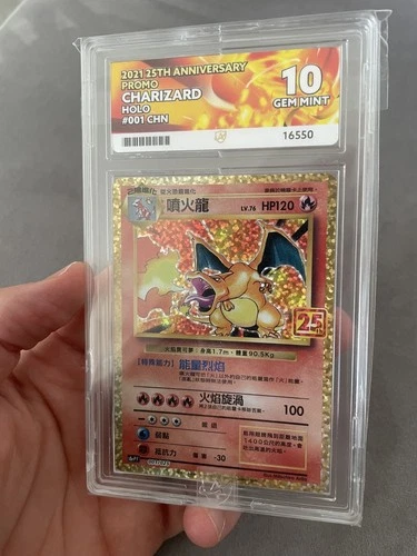 Charizard 001/025 Ace Grading 10 GEM MINT Chinese 25th Anniversary Pokemon Card | 001/025 | 10 | £208.69 | £10.00 | +£198.69 | +1986.9% | 2026-04-10 | View listing | ||