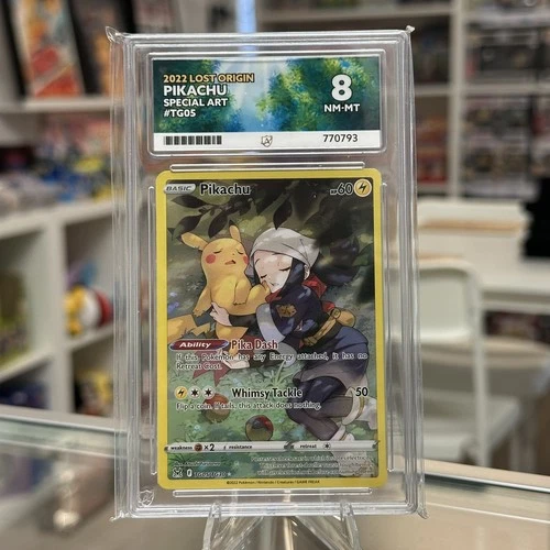 Pikachu TG05/TG30 Lost Origin Trainer Gallery Illustration ACE Grading 8 NM | TG05/TG30 | 8 | £26.95 | £12.44 | +£14.51 | +116.6% | 2026-04-10 | View listing | ||