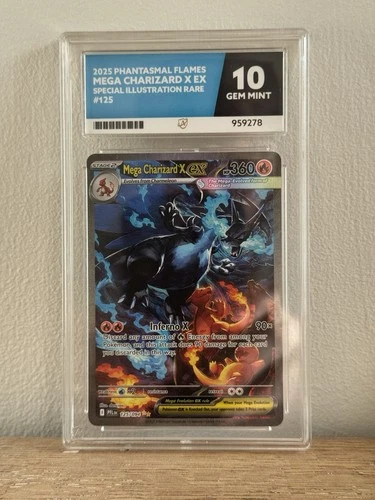 Mega Charizard SIR X Ex 125/94 Mint 10 Ace Grading Phantasmal Flames Pokemon | 125/94 | 10 | £1,025.68 | £1.50 | +£1024.18 | +68278.7% | 2026-04-11 | View listing | ||