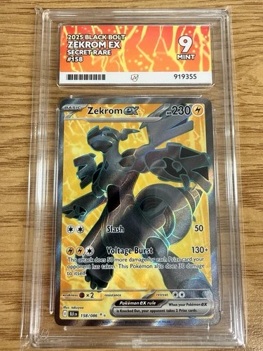 Zekrom EX Secret Rare 158/086 ACE Grading 9 Mint Pokémon Card English Black Bolt | 158/086 | 9 | £15.00 | £1.00 | +£14.00 | +1400.0% | 2026-04-12 | View listing | ||