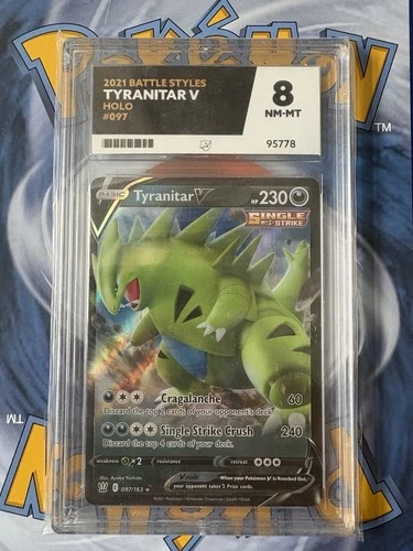 Battle Styles Tyranitar V Half Art Ultra Rare #097/163 Ace Grading 8 Near Mint | 097/163 | 8 | No | £6.53 | £0.75 | +£5.78 | +770.7% | 2026-04-10 | View listing | |