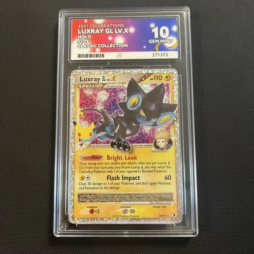 Luxray GL Lv X Pokemon Celebrations Classic Collection 109/111 Ace Grading 10 | 109/111 | 10 | £26.70 | £8.99 | +£17.71 | +197.0% | 2026-04-11 | View listing | ||