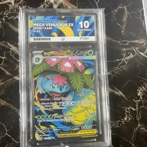 Mega Venusaur EX 2025 Mega Evolution Secret Rare 155/132 Ace Grading 10 | 155/132 | 10 | £32.56 | £4.50 | +£28.06 | +623.6% | 2026-04-10 | View listing | ||