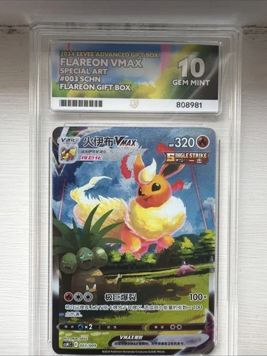 Ace Grading 10 S-Chinese Flareon VMAX Gift Box Promo Pokémon Card 003/009 | 003/009 | 10 | No | £26.95 | £82.50 | £-55.55 | -67.3% | 2026-03-28 | View listing | |